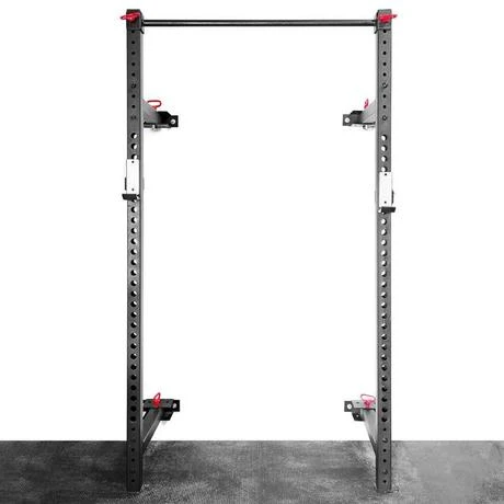 The Retractable Power Rack makes a good addition to any home/garage gym. The rack retracts for easy storage and includes a pull up bar and squat rack.