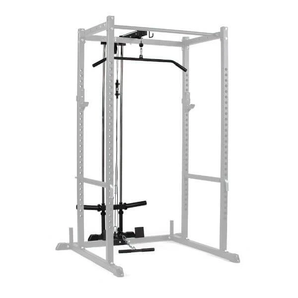 The Lat Tower Attachment is a quick and easy way to turn your T-2 Series Power Rack into a traditional lat pulldown machine. Unlike a typical lat pulldown machine you will save space with this pulley system that allows for the same training benefits. The attachment includes a lat pulldown handle and a low row handle to be able to target your arms and back in a variety of ways. Β