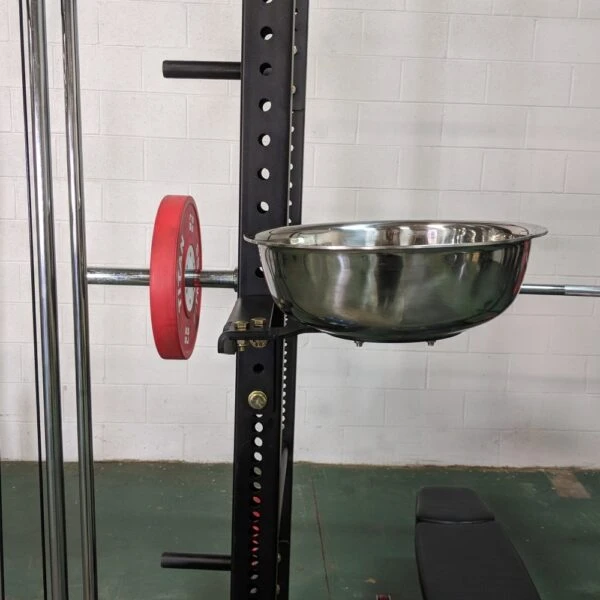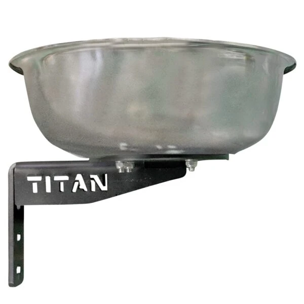 The rack mounted version of the Titan Chalk Stand (a free standing version is also available) is made from a 2mm stainless steel bowl and is perfect for storing enough chalk for multiple athletes. The bowl measures 14″ in diameter with a 5″ depth and is connected to the rack by 5/16″ steel arm that can be mounted to Titan X2/X3/T3 Power Rack, Titan Mass Storage System, and any Titan Wall Strip.